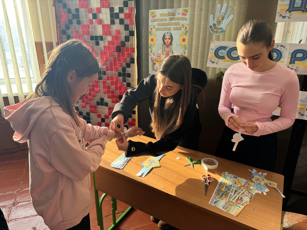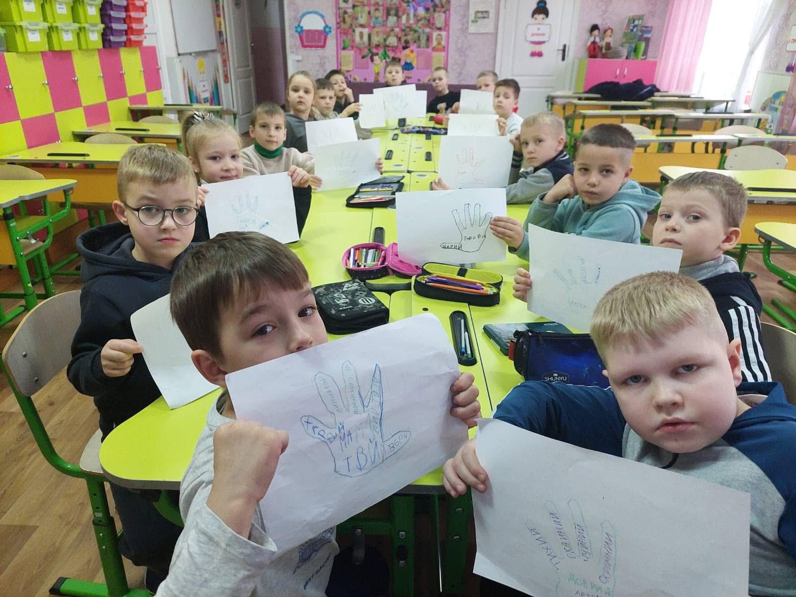Учні створювали колаж з долоньками «Ця рука ніколи не вчинить насильства» та проективний плакат «Тепло наших сердець», наповнювали «Банку добрих вчинків». Через гру «Коло безпеки» навчалися способам попередження ризикованих ситуацій при спілкуванні з незнайомцями.