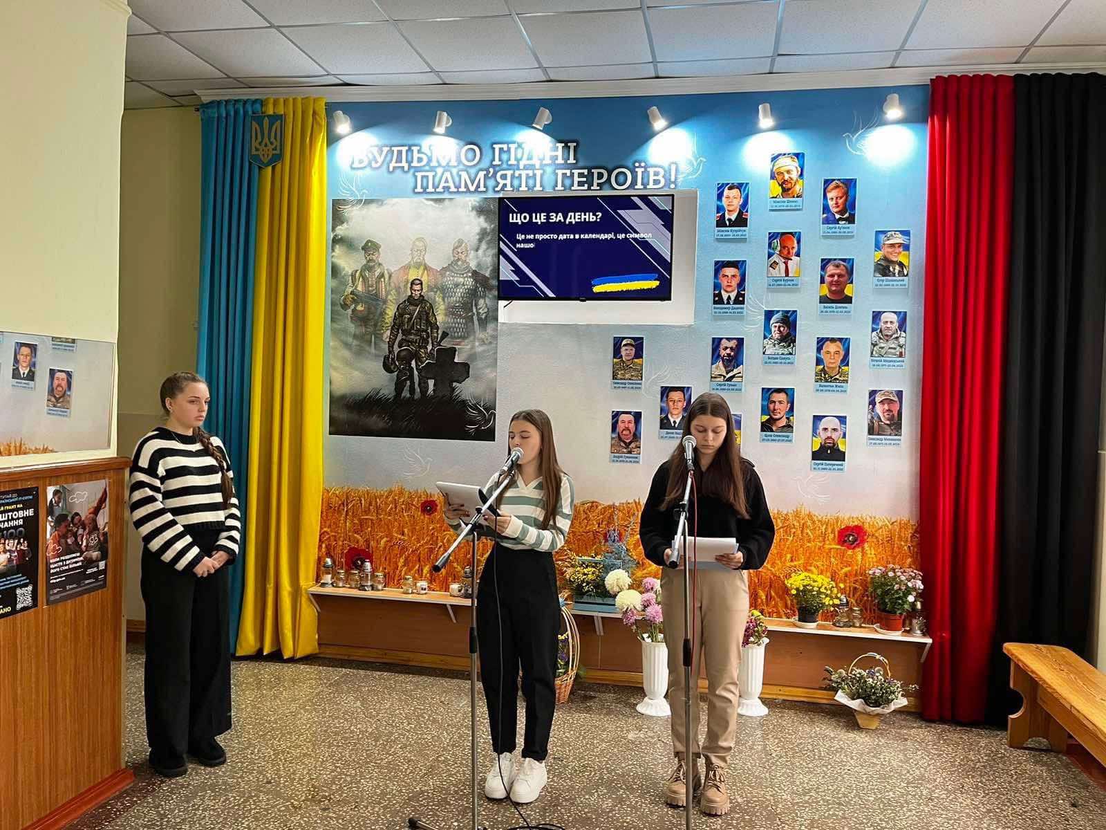 Сьогодні, ми згадуємо борців за свободу нашої держави, і вшанувуємо героїв минулих поколінь, а особливо дякуємо нашим воїнам - за можливість навчатись і працювати.